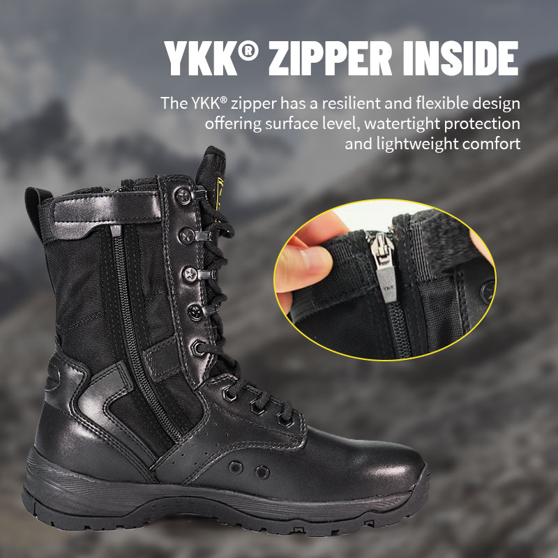 Създадени за военен персонал и ентусиасти на открито, полицейските ботуши с пълна гумена подметка предлагат удобно, обгръщащо се прилягане със сериозна стабилност на неравен терен. Езикът с накрайници предпазва от замърсяване и остава центриран, докато издръжливата горна част от велур и найлон издържа на тежки условия. YKK ципът улеснява обуването и събуването, за да можете да останете фокусирани върху предстоящата мисия.