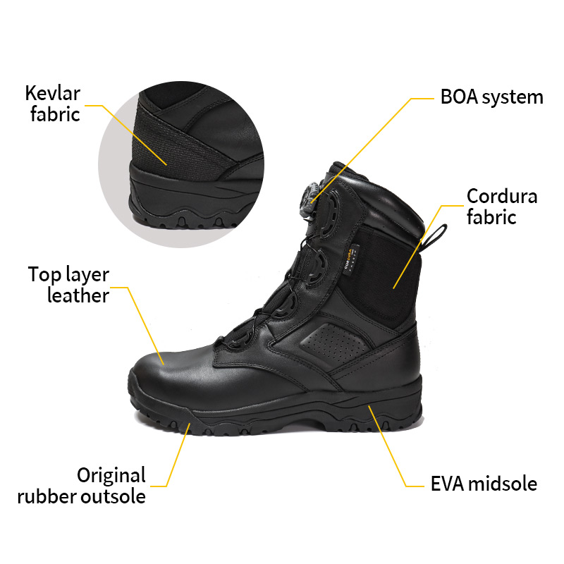 Тези полицейски ботуши със система за бързо поставяне/събуване са на склад и са готови за изпращане, като поръчките започват от само 10 чифта. За повече подробности или запитвания за цени, не се колебайте да се свържете с нас по всяко време. Възможно е и персонализиране при минимална поръчка от 800 чифта. И този модел има следните предимства: