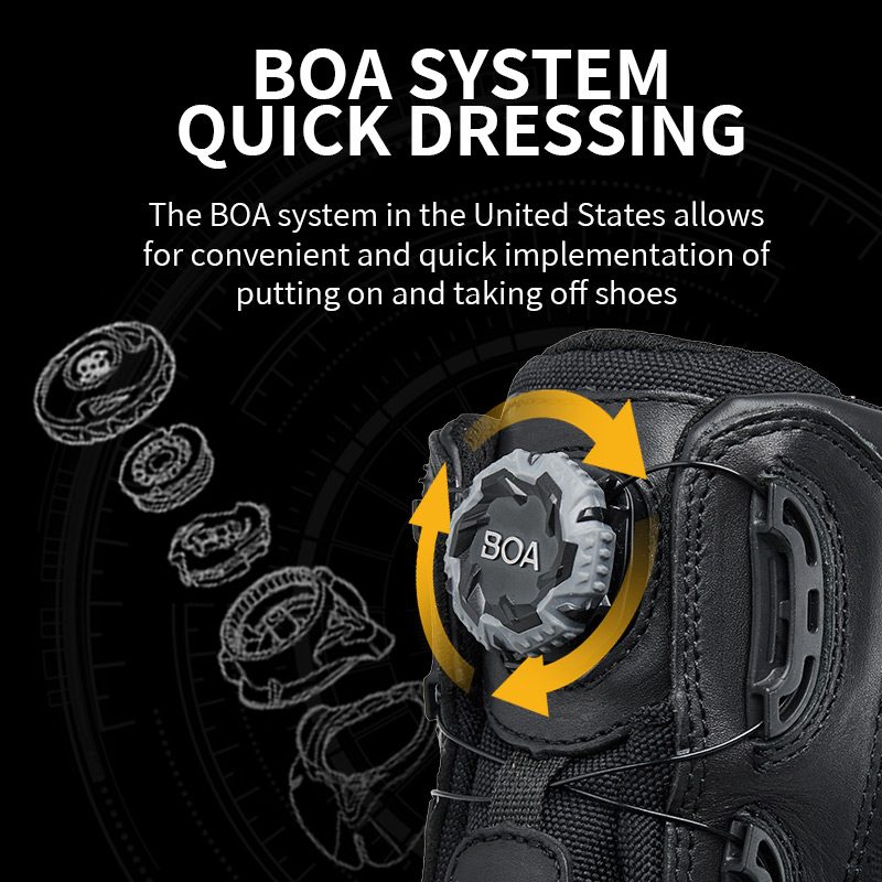 Системата BOA прави включването/изключването лесно: бързо завъртане за затягане, дръпване за освобождаване. Без връзки, без проблеми.