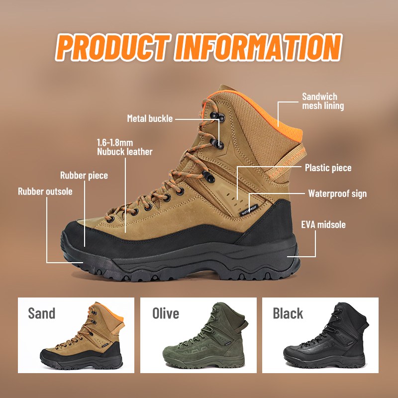 Тези водоустойчиви туристически обувки със силно сцепление против хлъзгане се предлагат за персонализиране на цветове, материали и детайли с MOQ от 800 чифта, идеални за сътрудничество с марка и групови доставки. И тези трекинг обувки имат следните предимства: