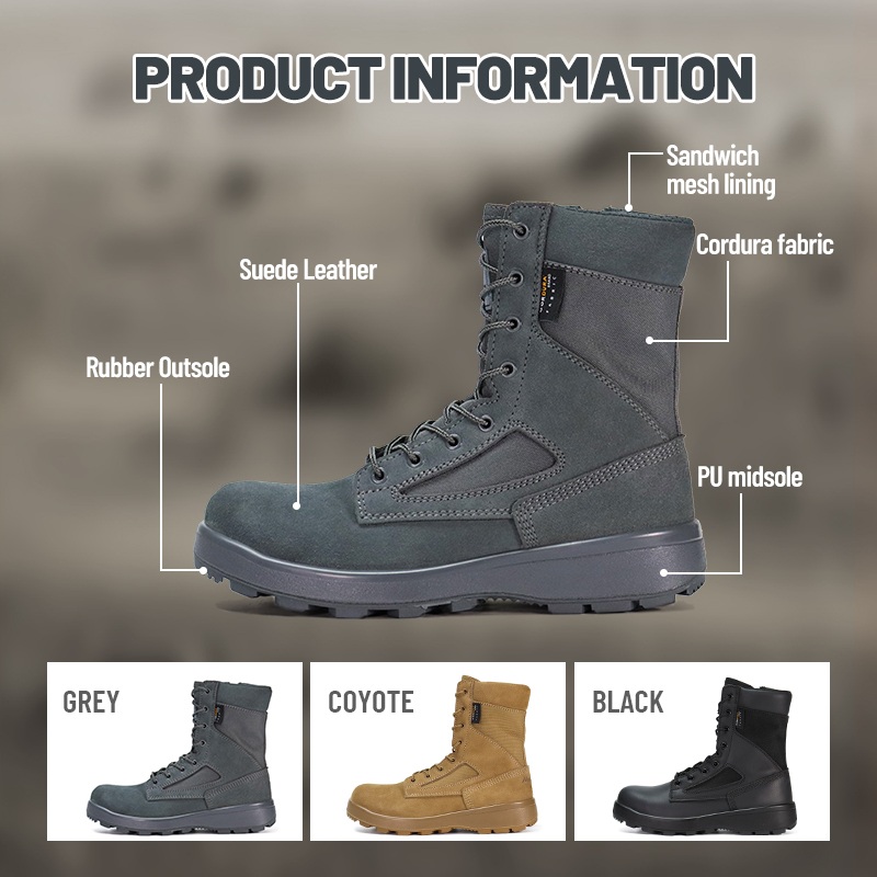 Тези ветроустойчиви, пясъчни и противоплъзгащи пустинни тактически ботуши са налични за персонализиране на цветове, материали и детайли, с MOQ от 800 чифта, идеални за сътрудничество с марка и групови поръчки. И тези пустинни ботуши имат следните предимства: